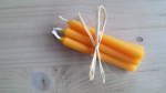 Handgedrehte Bienenwachskerzen mit Wabenmotiv.